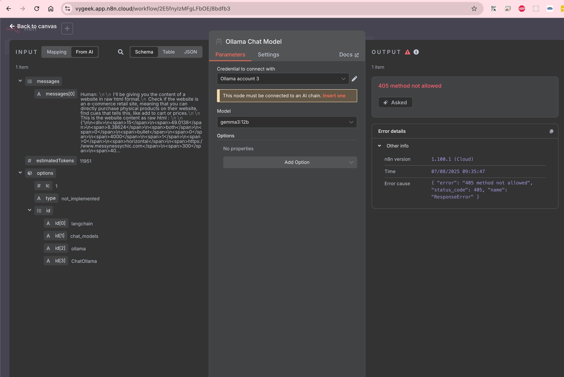 curl using server IP and domain name is working correctly but when using ollama node, I get “405 method not allowed”.