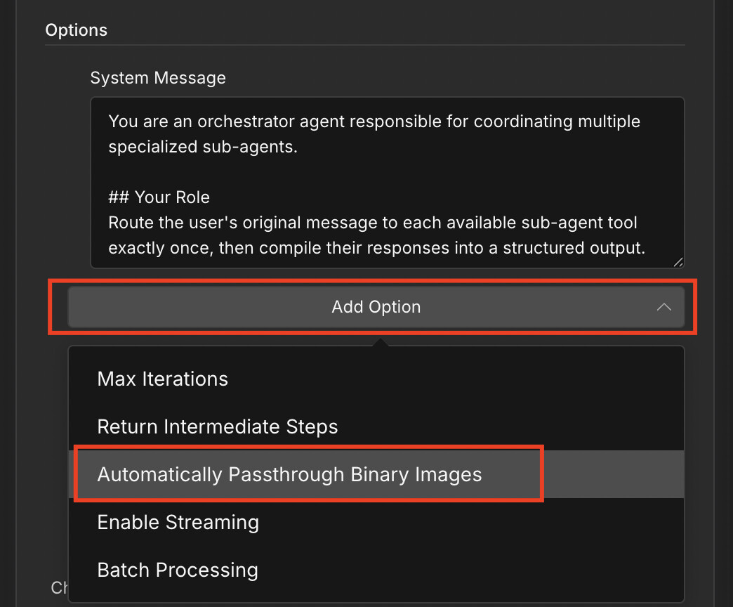 Under the additional options for the main as well as each of the sub agents, set the passthrough binary image option