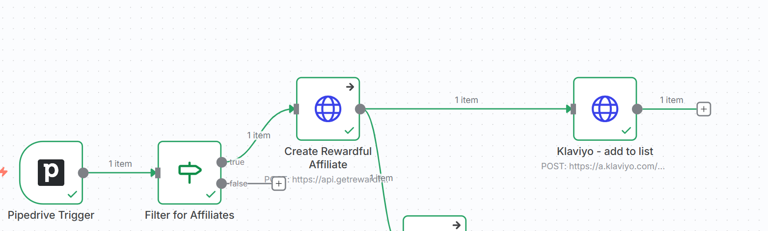I am building an automation where upon registration via a formular a person gets their profile created in rewardful and after that I want them to get signed up into a Klaviyo list.