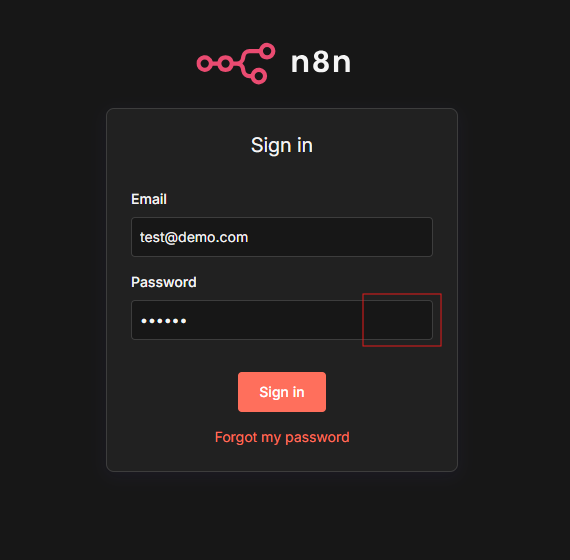It would be helpful to add a button to hide/show the password on the n8n login form.