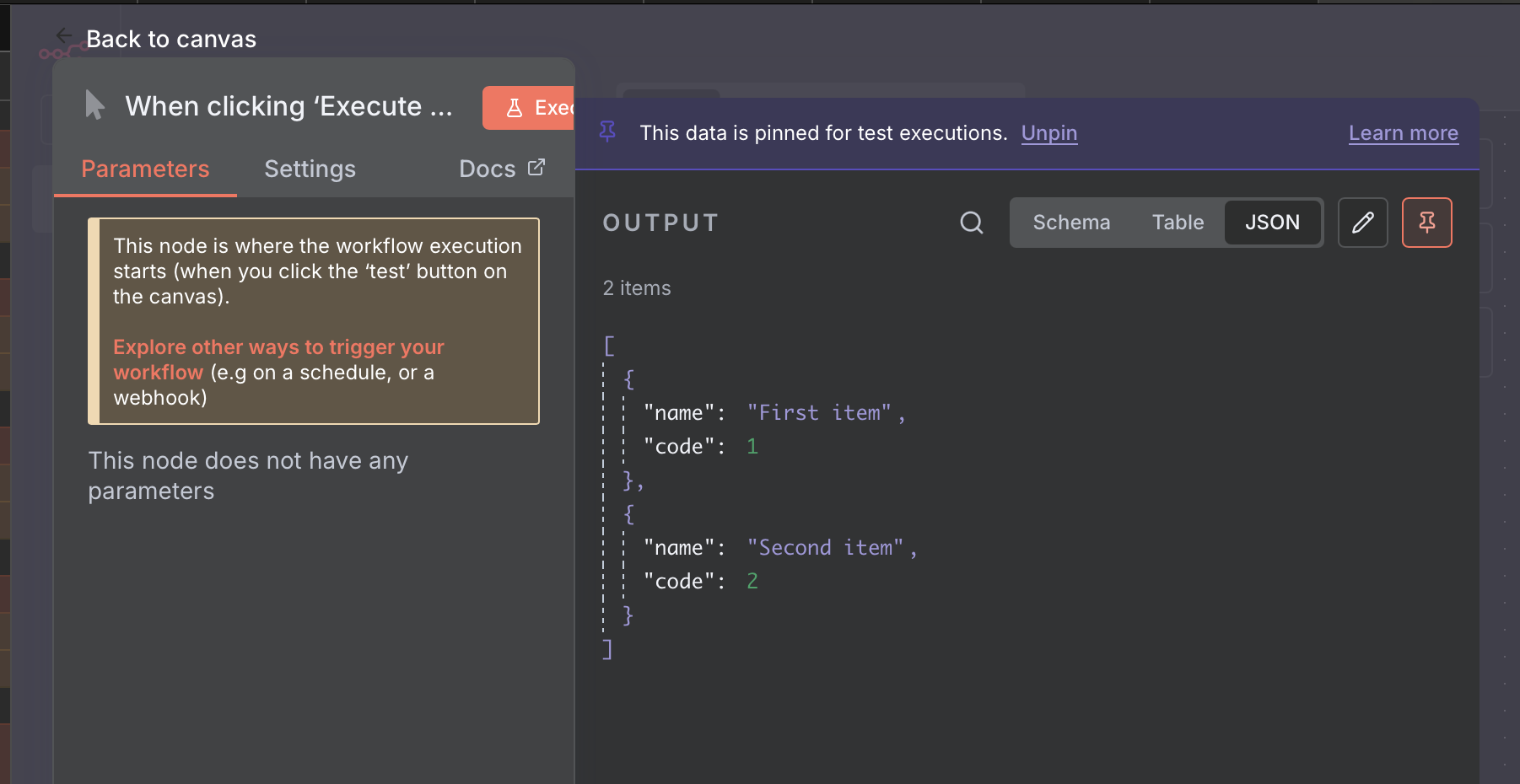 Dont trust instructions from any LLM. They just dont have enough information on n8n workflows and will often lead you down the wrong path. So based on my previous response, you can set your “starting dummy data” by setting the json in the manual step. PS, you’ll probably one day want to trigger this workflow from either a webhook or schedulur so I would suggest using a set node for now.