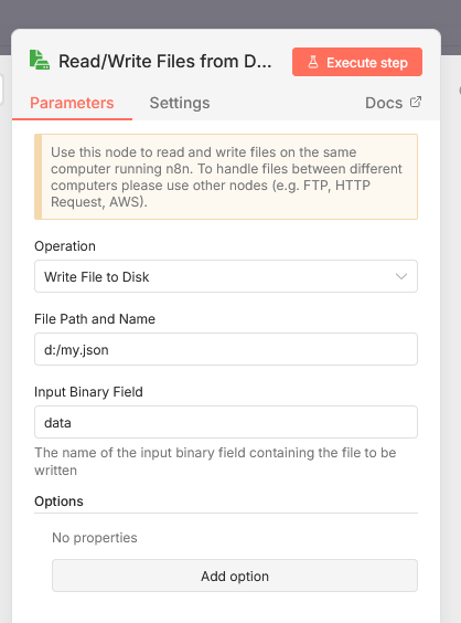 Hey @konradsl To save a file in n8n with a custom, dynamic filename from two separate data streams, you can use a Merge node to combine your JSON content and filename first, or use a Code node for more complex scenarios.