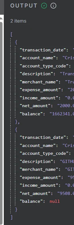 the tool answer a json with two transactions: