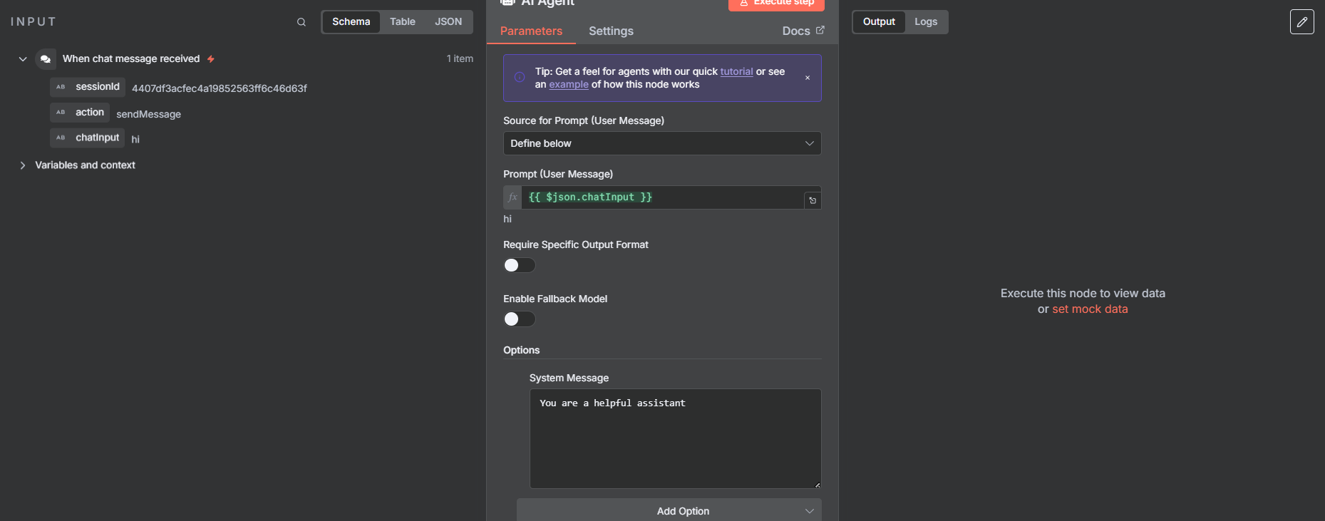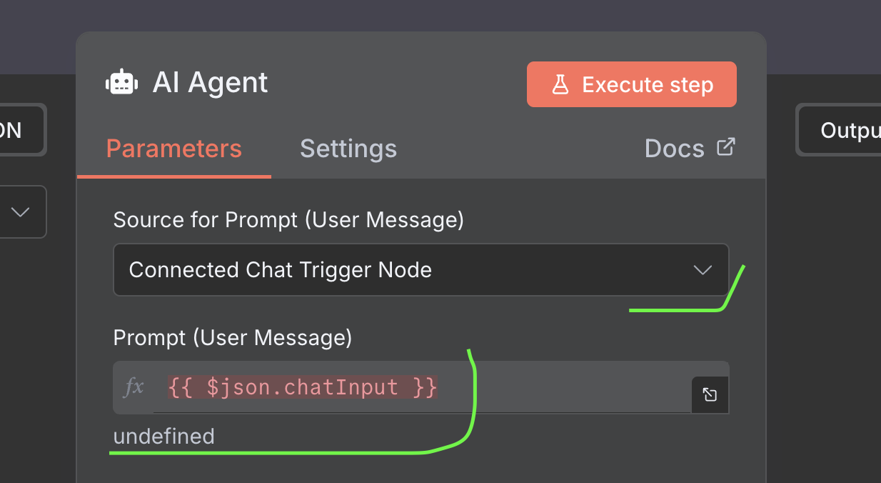 but for the manual trigger node, you need to change the User Message and define it on your own