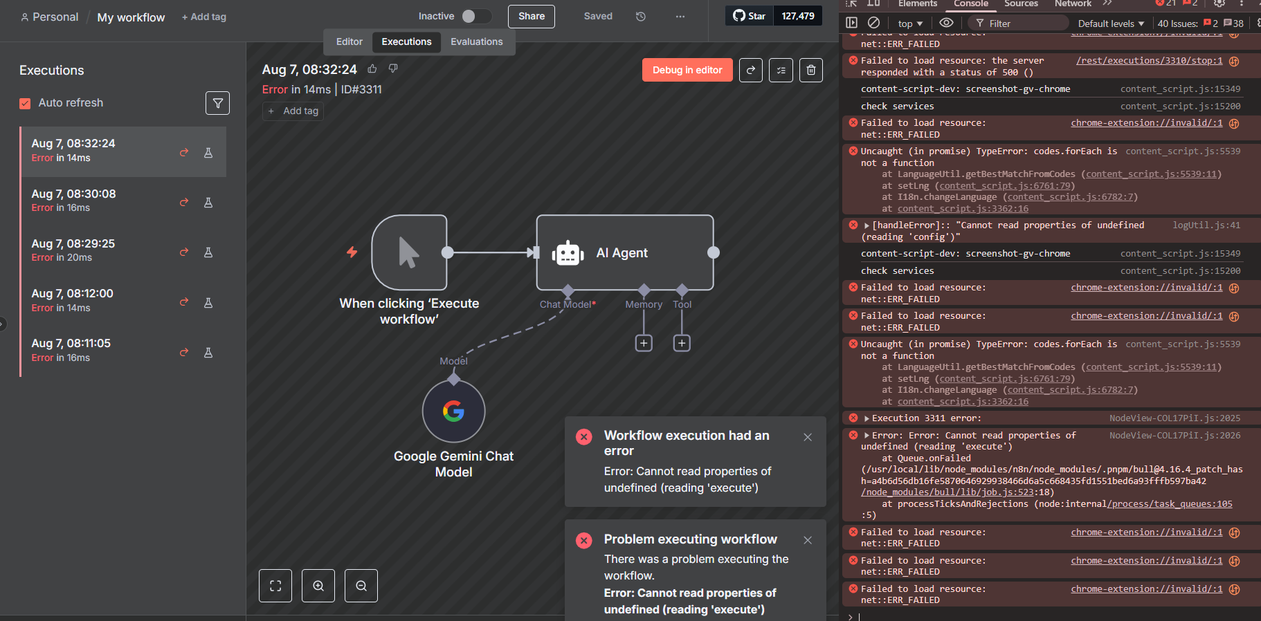 i have a problem in my railway hosted n8n, with the ai agent node, any other nodes are working fine but whenever i add an ai agent node to the system even it’s not linked to other nodes the system doesn’t run and it gives me the errors in the image.