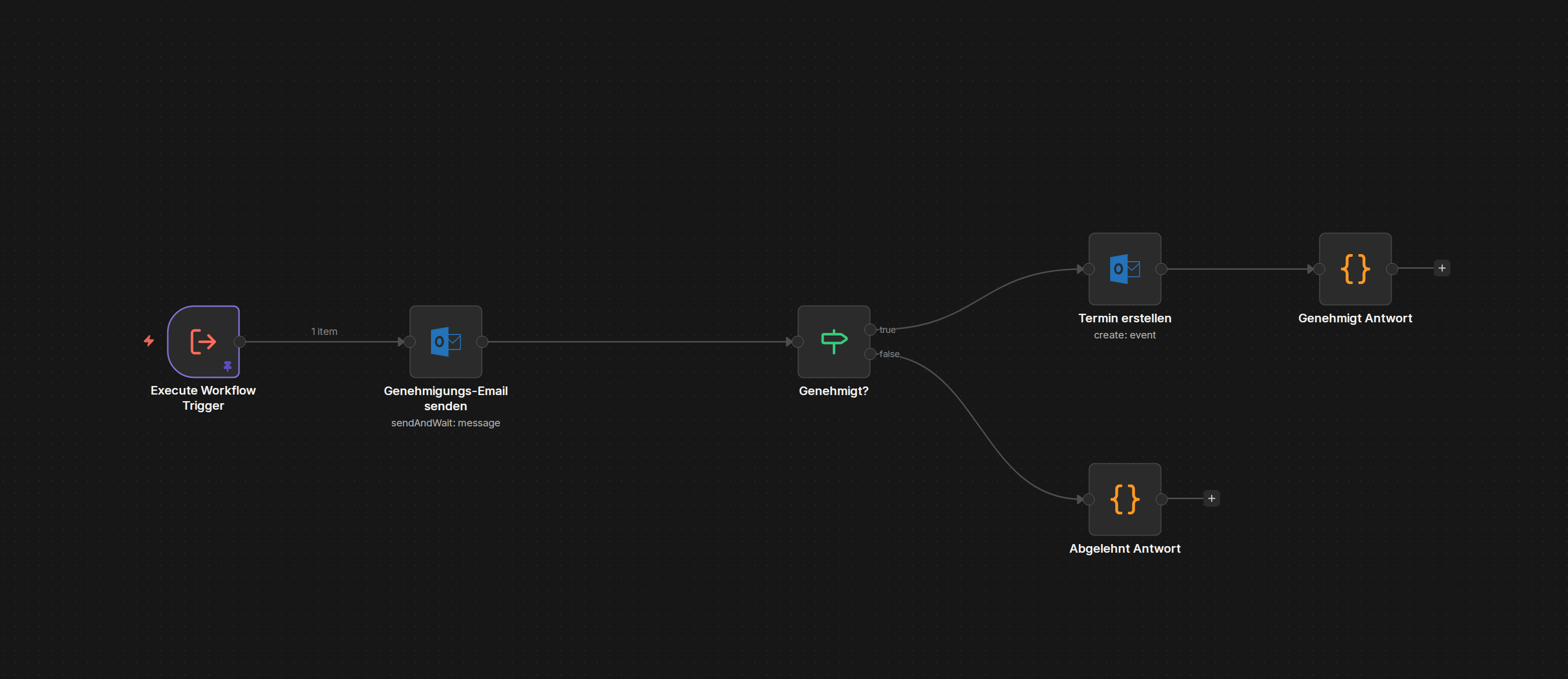 Subworkflow: Sends an approval email to me → Wait for Webhook → Books the meeting.