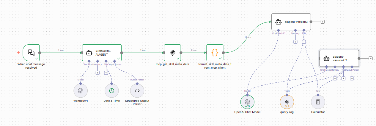 It appears that after aiagent version 3 calls an mcp tool through the mcpclient tool, there is multiple layers of nesting in the subsequent request. This causes the LLM to fail in recognizing that the agent has called the tool as required (because the function_name in the nested structure doesn’t match the one in the tool_list), leading it to respond again as if it were the previous tool call
