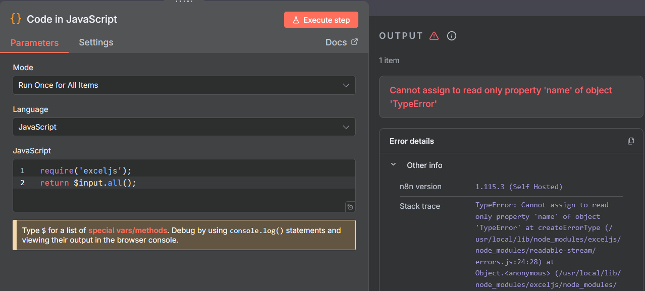 But if I call exceljs it returns an error.