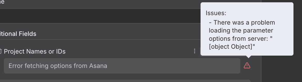 Make sure you’ve selected a project ID (or passed one dynamically through expressions) in the “Projects” field under the Create a task node. Without that, Asana usually throws an error or fails to create the task.