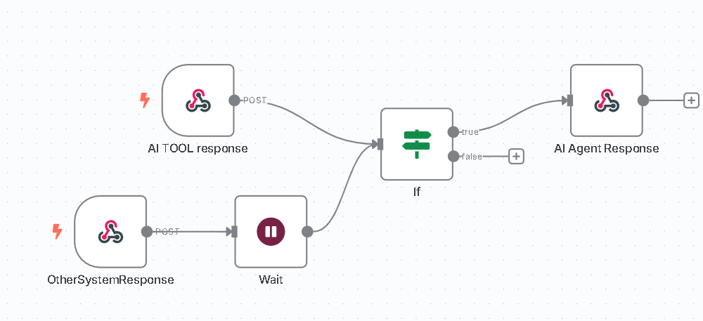 The main issue is timing. The response from the other system takes a while to arrive. Imagine I trigger the tool with the HTTP node — I’d then need to wait until the other system’s response is received. Once I have both the initial trigger and the external response, I’d want to merge them and send that combined result to the AI agent as the response to the original call.
