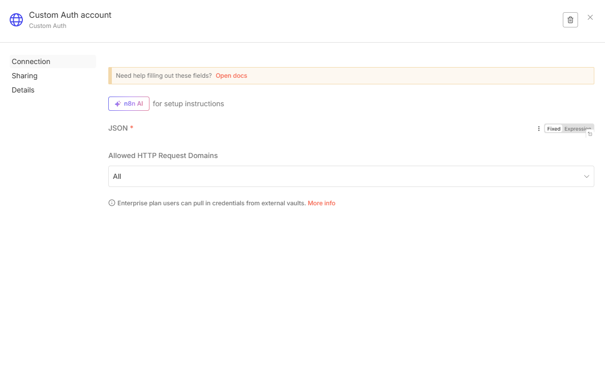This didn’t make any difference. This updates the custom credential (which already was the case), but in the credential itself (in the UI) it doesn’t show the JSON block and the credential also doesn’t work (so it isn’t correctly updated).