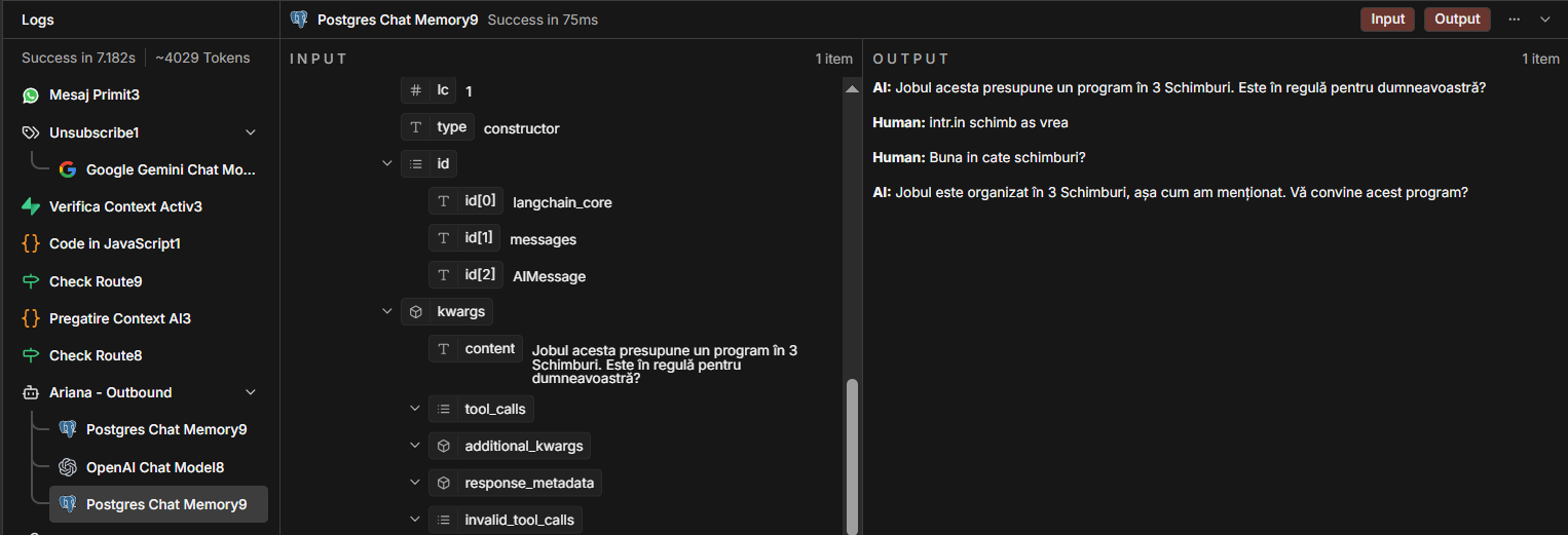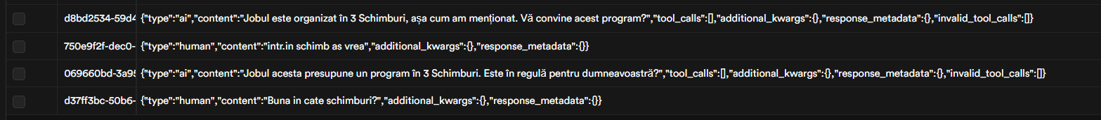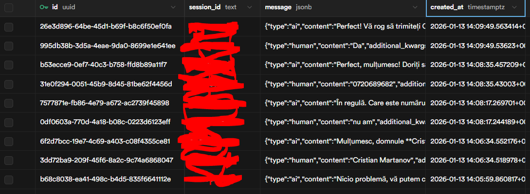They are real cases with potential customers of ours. Im sorry but they are in my native language. In the examples below, it is easy to spot how the Postgres node does not retrieve the messages chronolgically even if you do not understand the messages.
