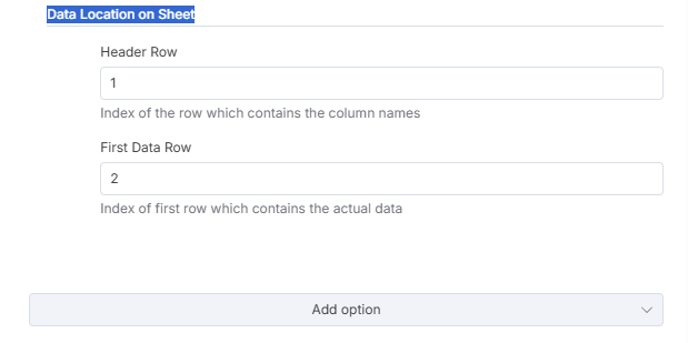 Thank you for your feedback @halmich That’s right, if I set the “First Data Row” value to 3, then everything is fine, or if I leave it completely blank, too. But as soon as there is a 2 there, the entire option is disabled. Will it work if I just leave the “First Data Row” empty?