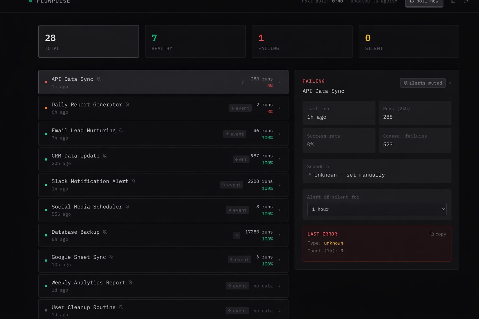 • Detects “silence” — when a workflow was expected to run but didn’t