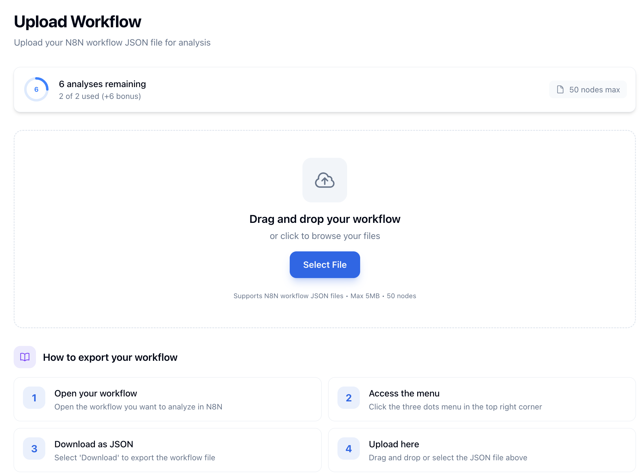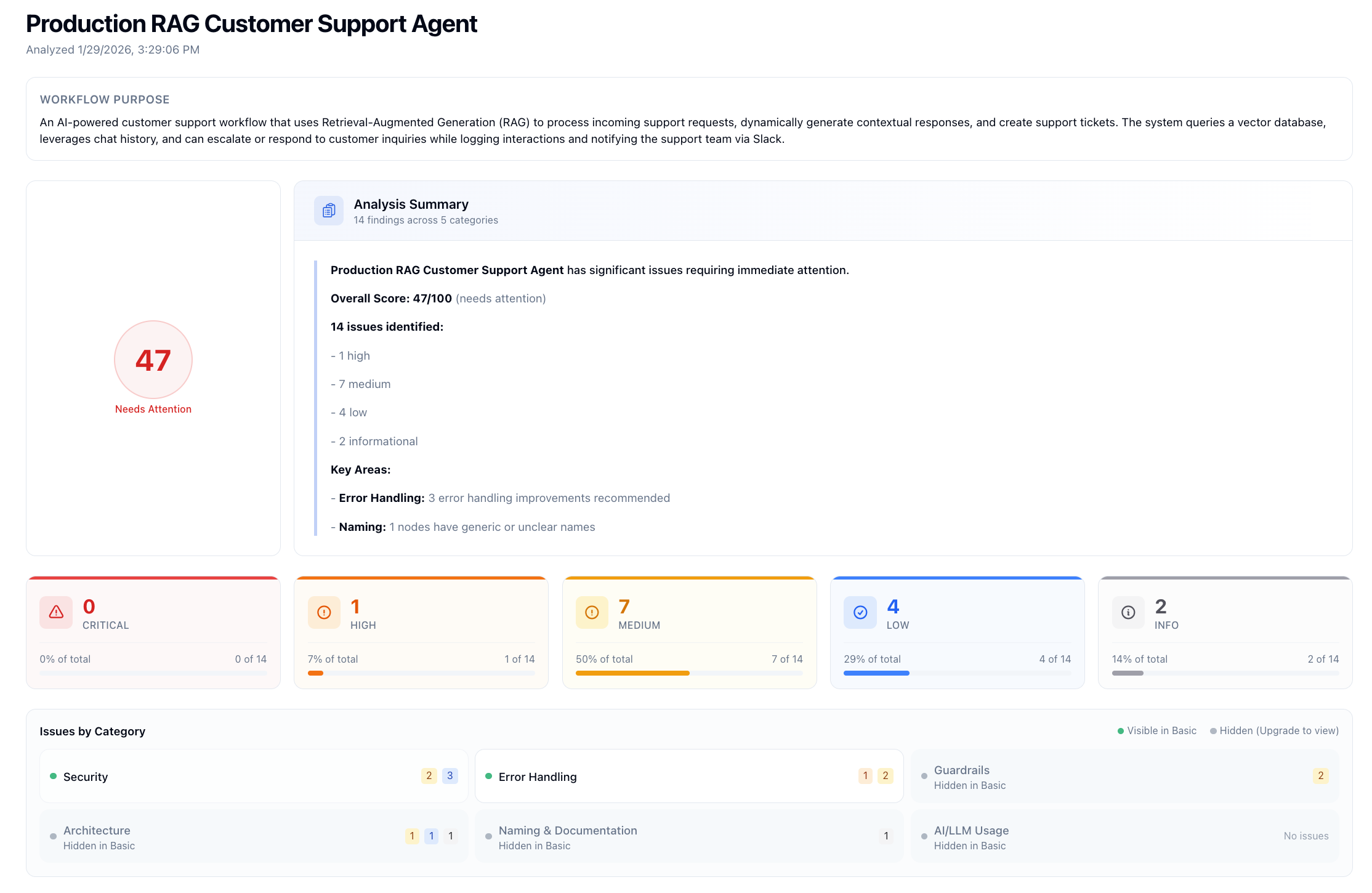 I love n8n. Been using it for a while now so I built a workflow analysis tool for n8n called Valid8r. Upload your exported workflow JSON and get a report covering security issues, error handling gaps, naming, and an overall health score with actionable recommendations.