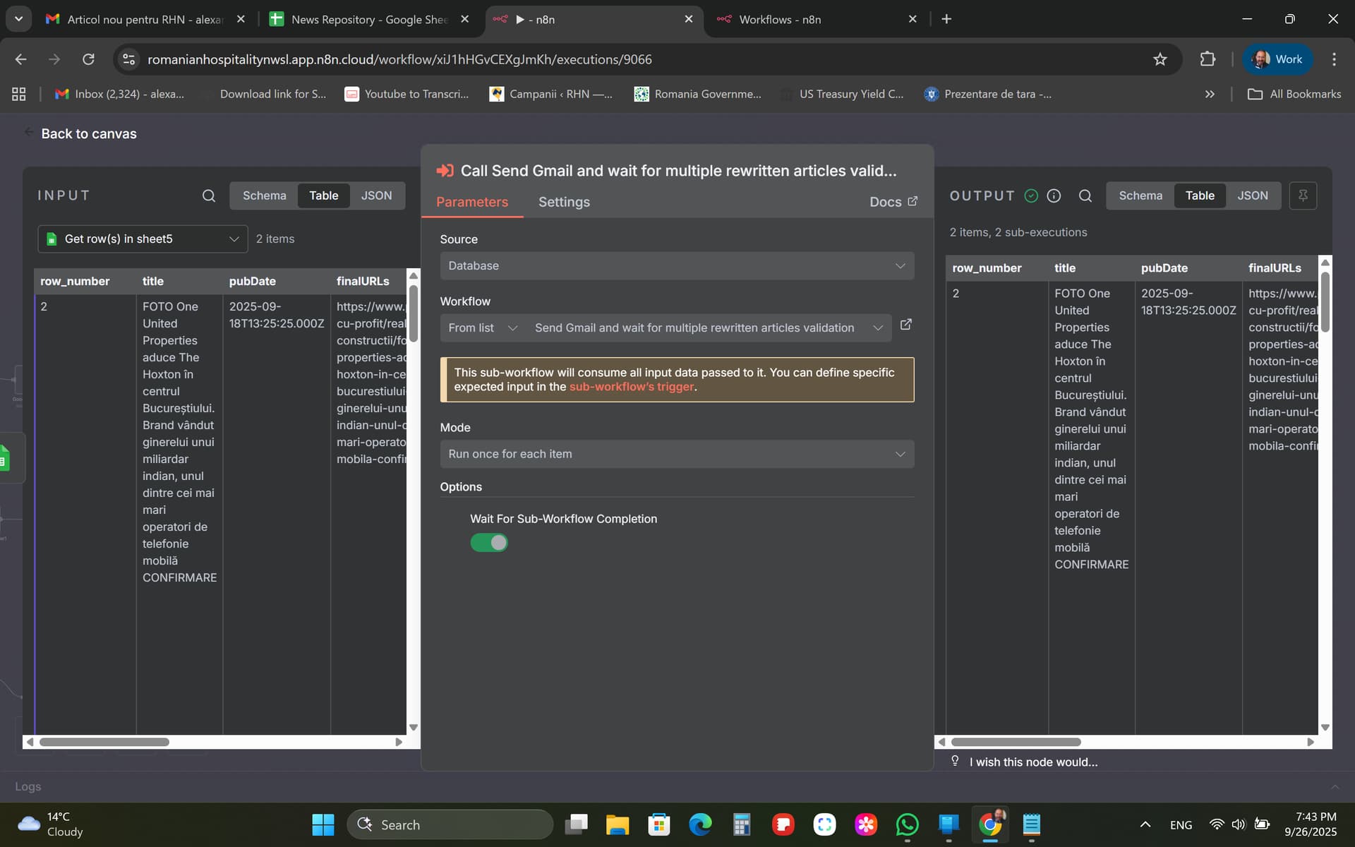 Let me know what you find in the output of the “Send Gmail and wait” node!