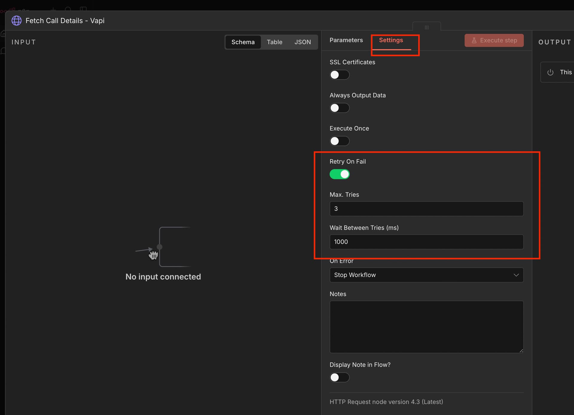 The ECONNRESET just means there was a temporary network error and you failed to reach the Vapi server. You can enable retries to mitigate this under the http node settings
