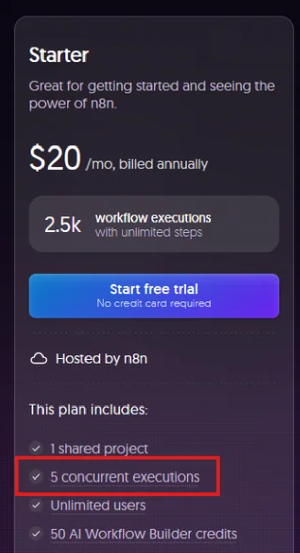 Concurrency limits on n8n Cloud apply only to production executions started from a trigger (like a webhook or schedule) in the main workflow. Sub-workflow executions do not count towards your concurrency limit. Only the main workflow execution is counted for concurrency.