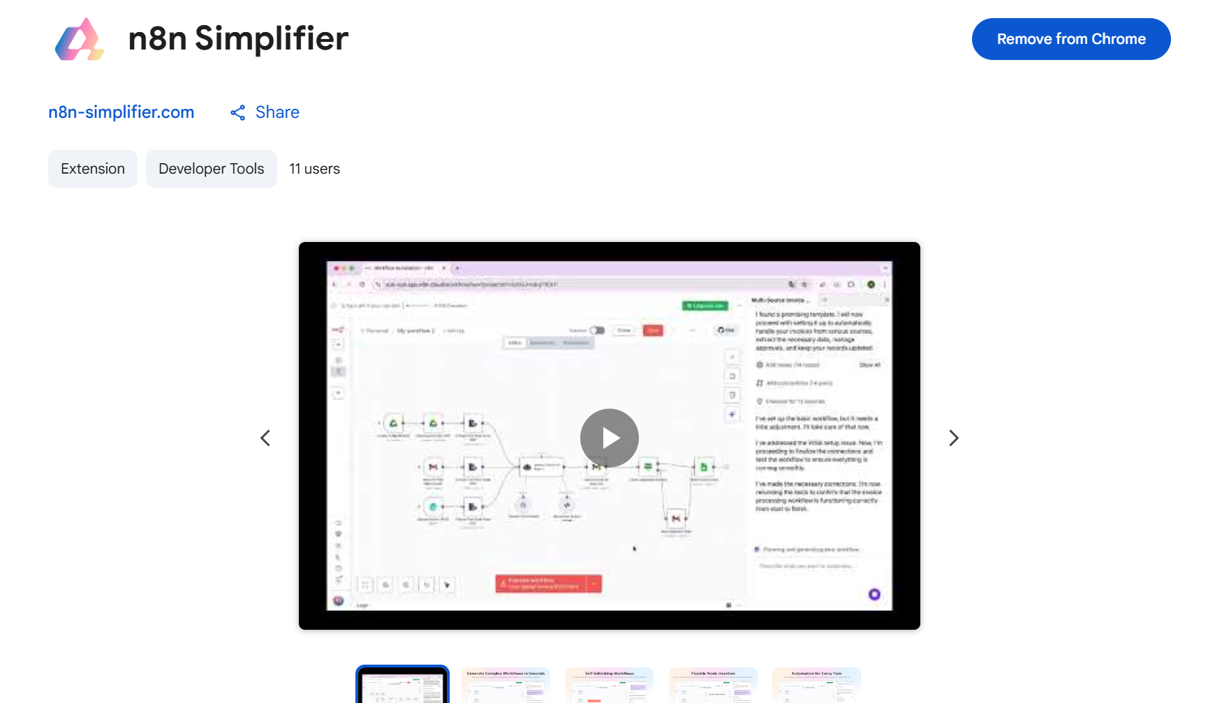 Built a Chrome extension that generates n8n workflows through chat. Works directly in your workspace.