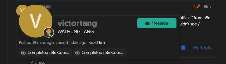 Not that one in the profile. I saw those badges on Internet with text saying “n8n Certified Level 1 or 2” marked on the badge.