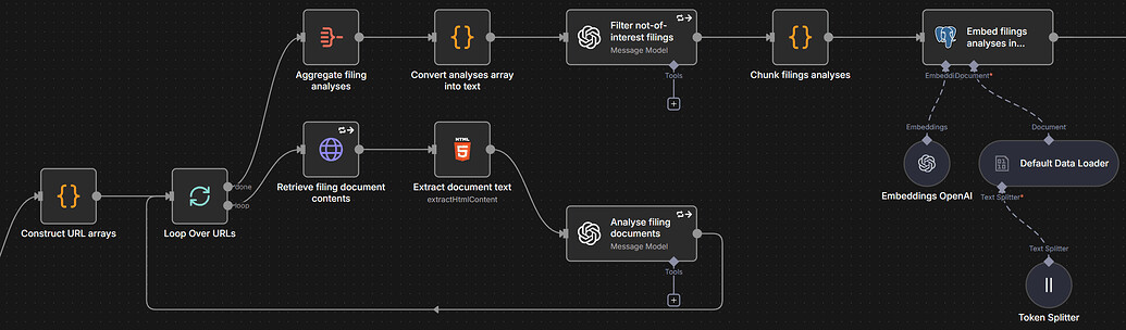 Automatically scans fresh SEC filings for crypto-related investments by US companies, uses AI to flag only the most interesting digital asset investments, and delivers a daily human-readable summary email (plus optional vector DB storage for historical lookback and deeper analysis).