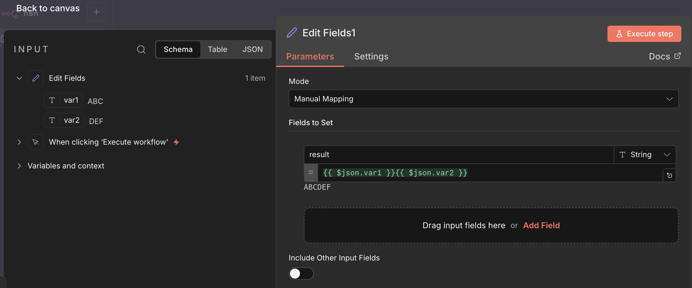 thank you for your reply. But My case is 2 seperated “Edit Fields” to combine into 1 string. (see my another reply)