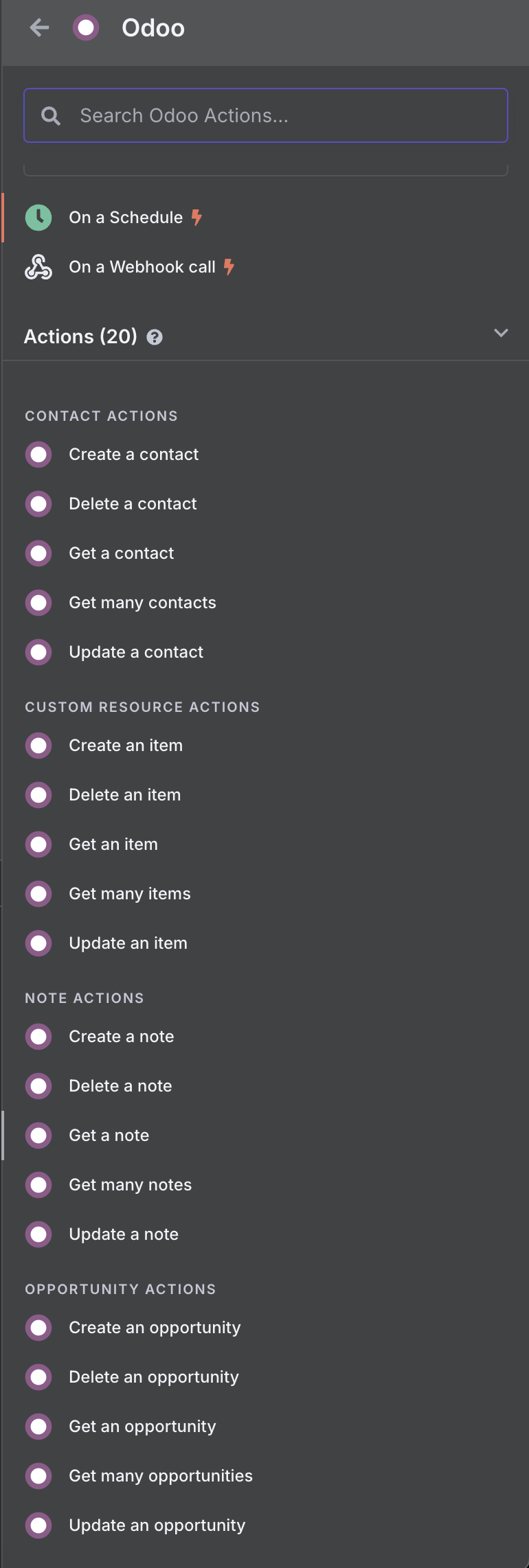 The current Odoo node there is no way to call methods (e.g. confirm order).