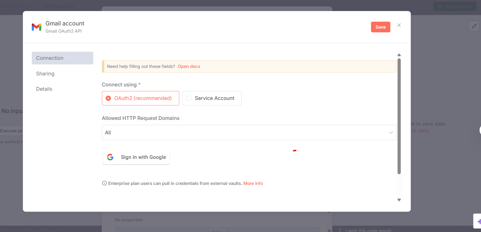 I’m trying to set up Gmail with OAuth2 in n8n, but when I create a new Gmail OAuth2 API credential, I only see the option to “Sign in with Google.”