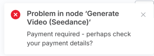 I’m not sure…. honestly brand new at this and I purchased this whole flow. It’s that bottom left node (generate video) The credentials are for replicate and it will not go.