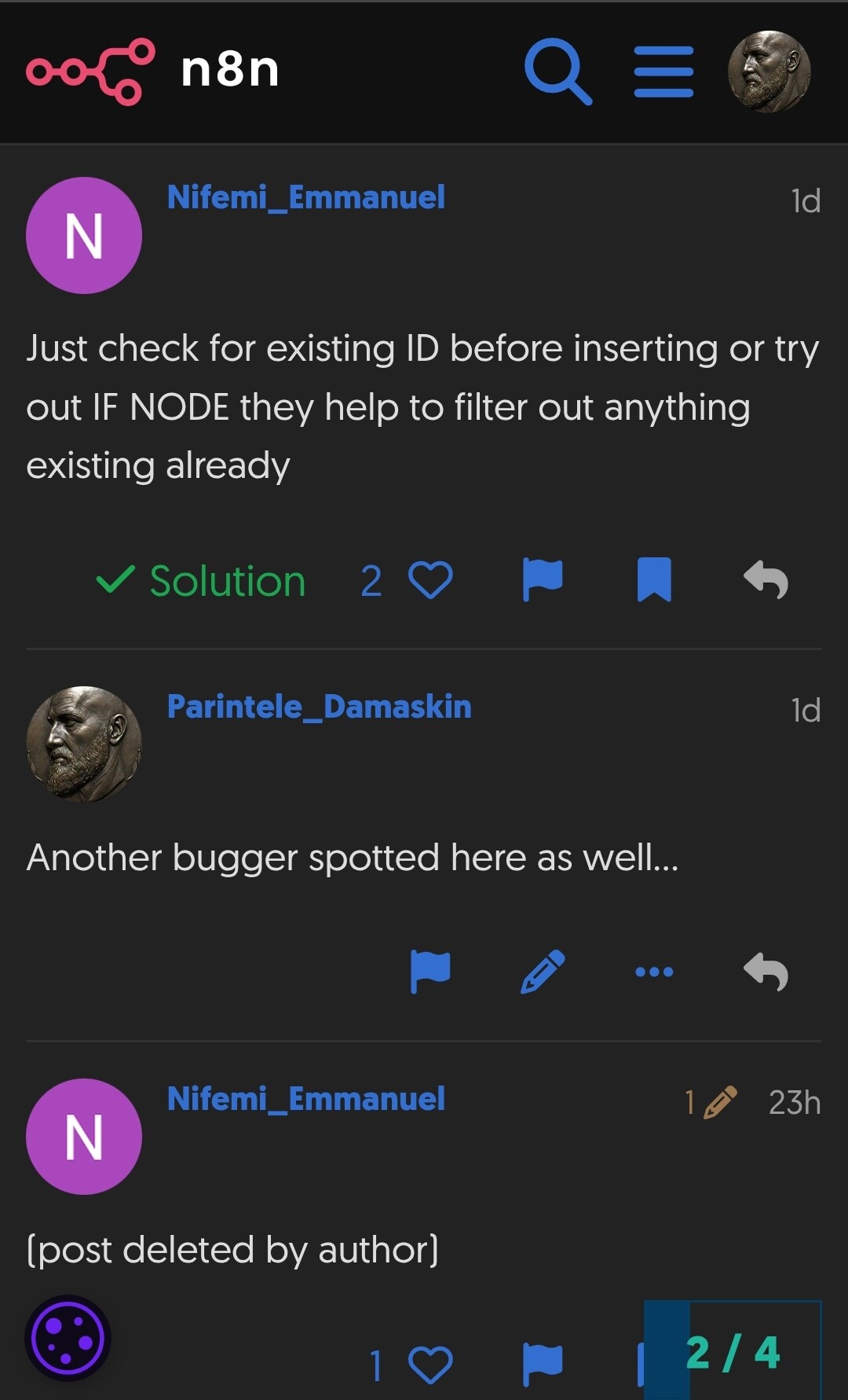 Nifemi_Emmanuel created 6 posts and 5 solutions!. All questions and answers are only a single paragraph, no link, no workflow, nothing.