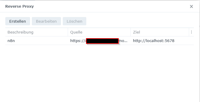 Meanwhile I played around and found something regarding reverse proxy on the Synology. I set up Synology to forward “external-hostname:port” to “localhost:5678” and the router to forward from external to synology:5678 and somehow I reach the webinterface. But that doesnt seem to be end of story, because: