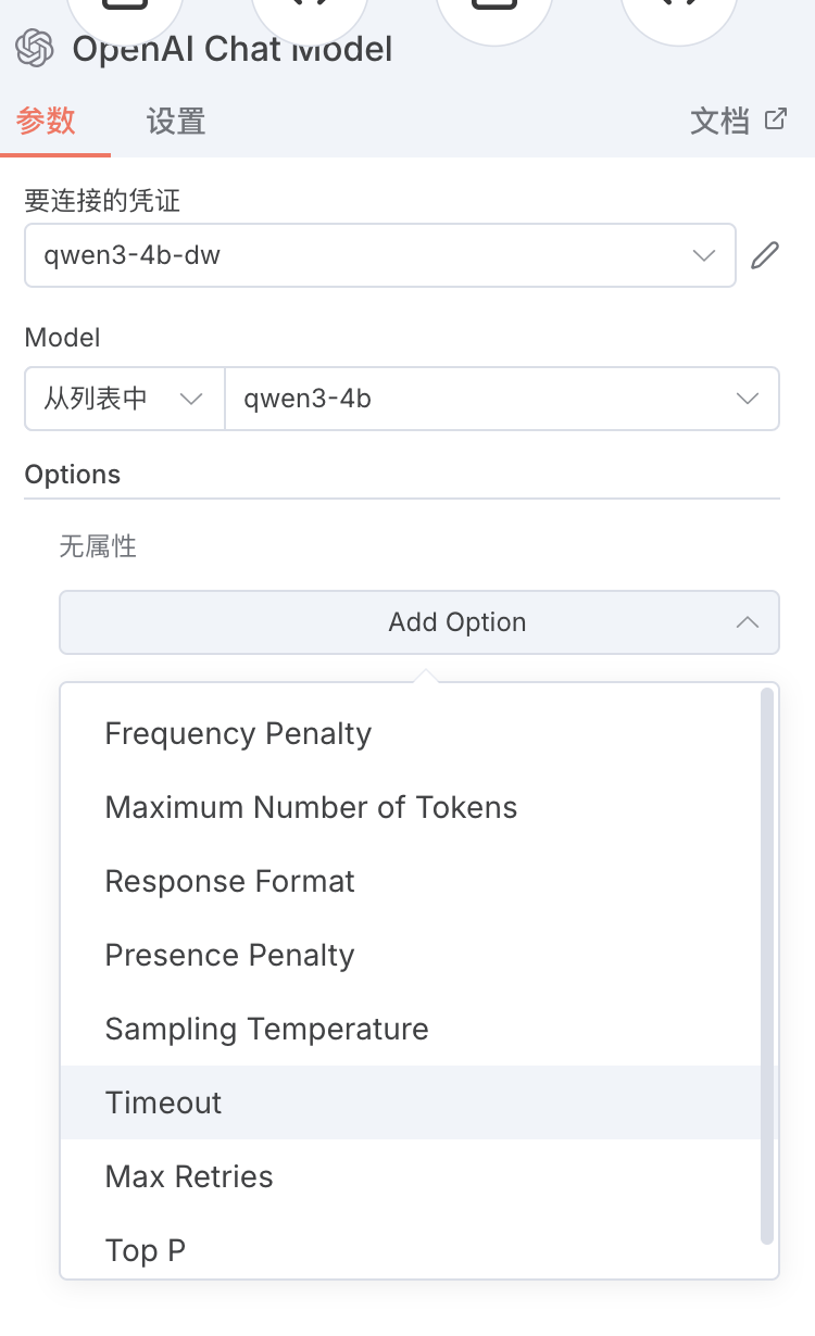 I use OpenAI Chat Model node, I want to use qwen3-4b llm, it has an option :