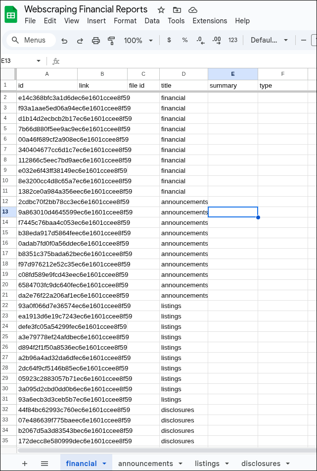 Switch Node example: Financial > output 0 > Your sheets node sheet name: financial