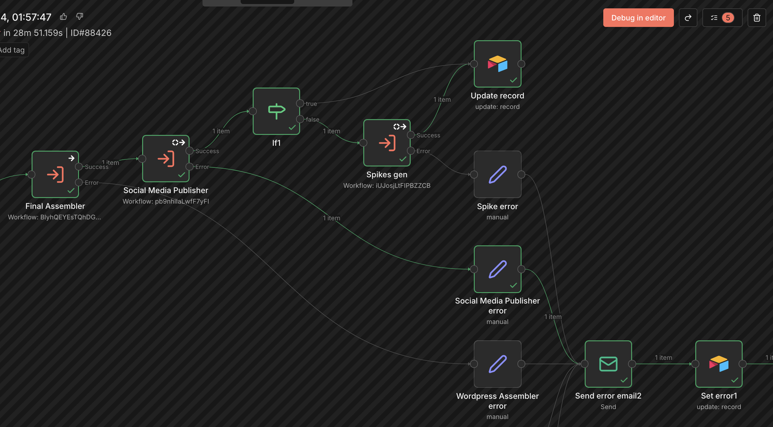 Hello, I am receiving simultaneous output from the sub-workflow for success and failure at the same time. How is this possible and how can it be fixed?