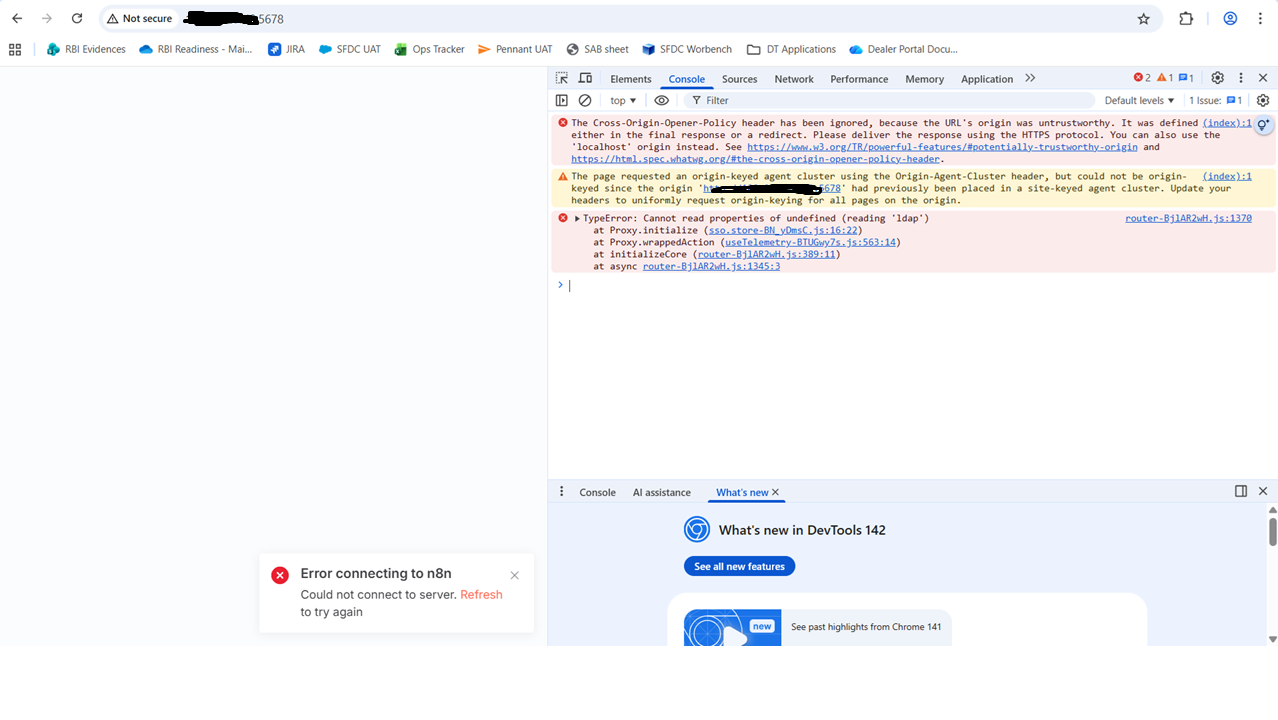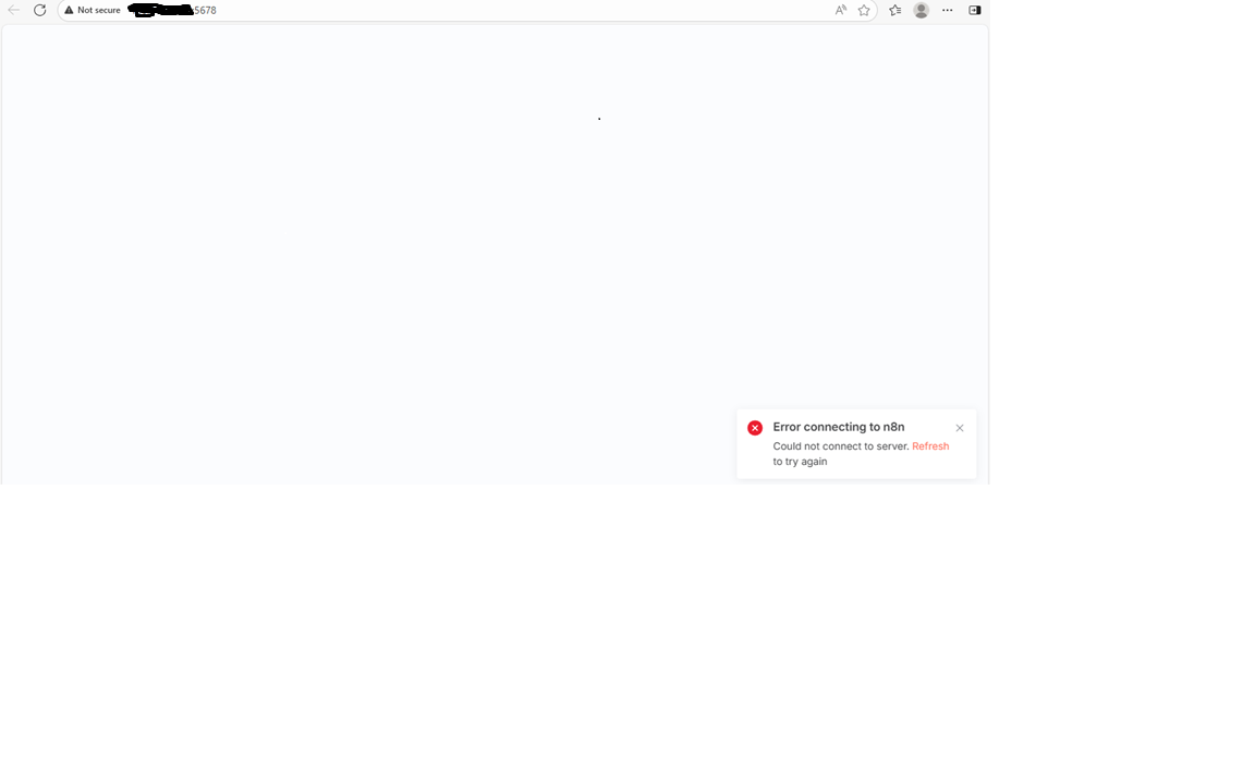 Getting “Error connecting to n8n - Could not connect to server” in browser when accessing n8n at http://localhost:5678