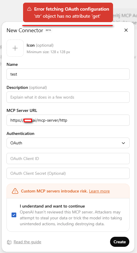 Hi, when I try to create on n8n self-hosted in ChatGPT MCP server, I had an error: