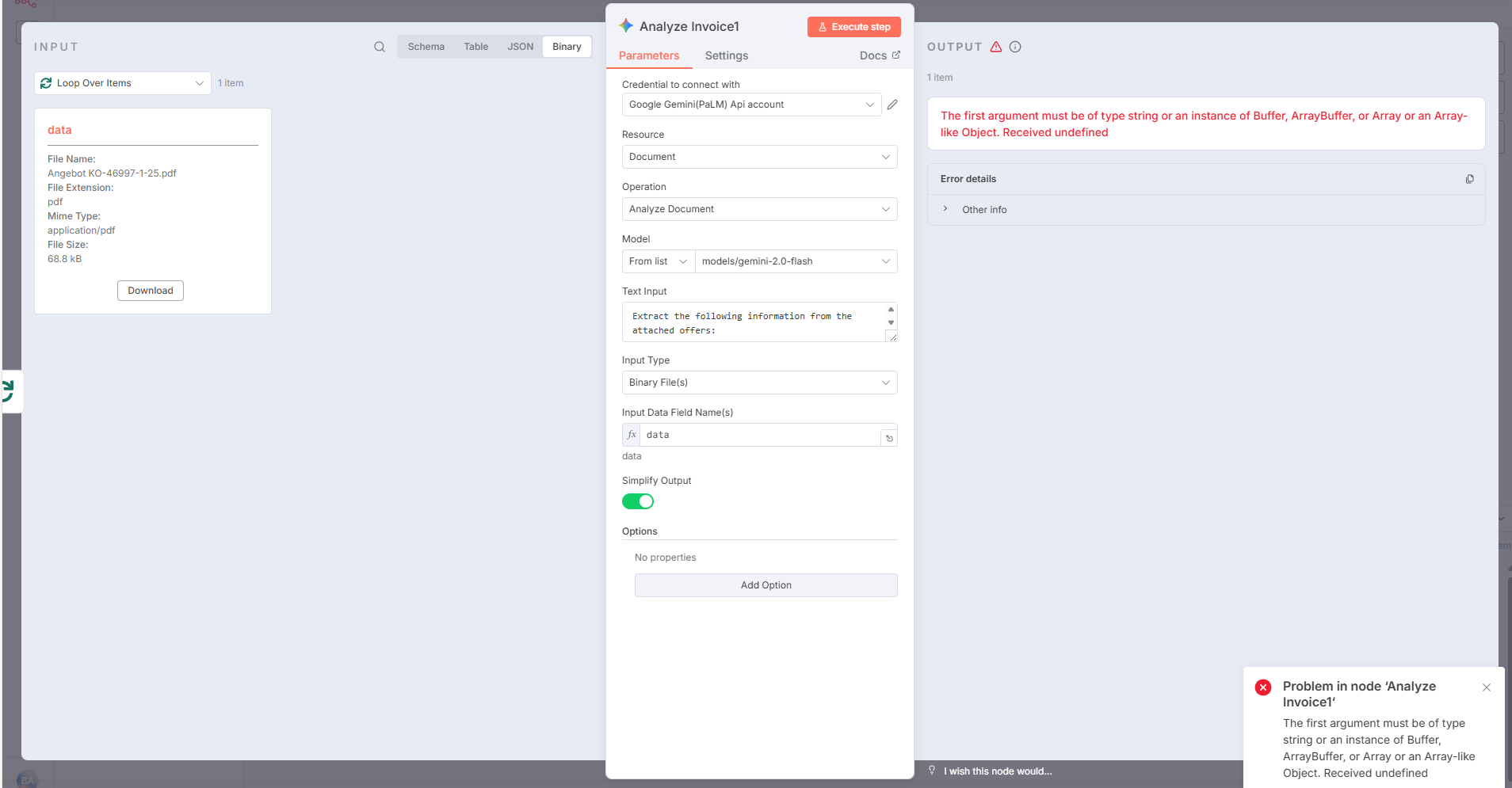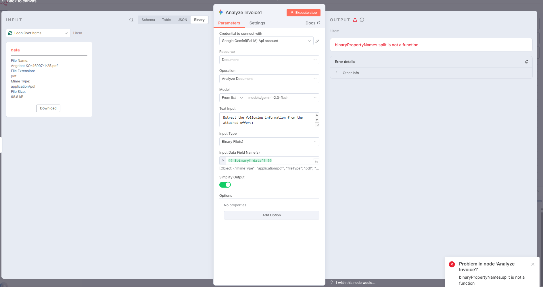 I’m uploading multiple PDF files via a submission form and converting them into a list format like [data_0, data_1, …]. I then loop over the items node, which is responsible for returning each file from the list one by one to the image analyzer.