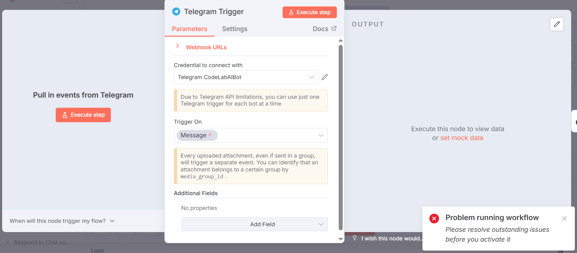 When i want use Telegram Trigger it gives me this error :