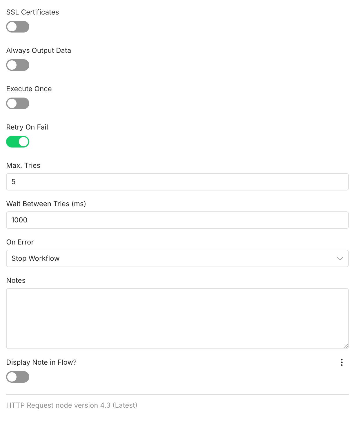 Do you by any chance have the âContinue On Failâ option turned on in the HTTP node?