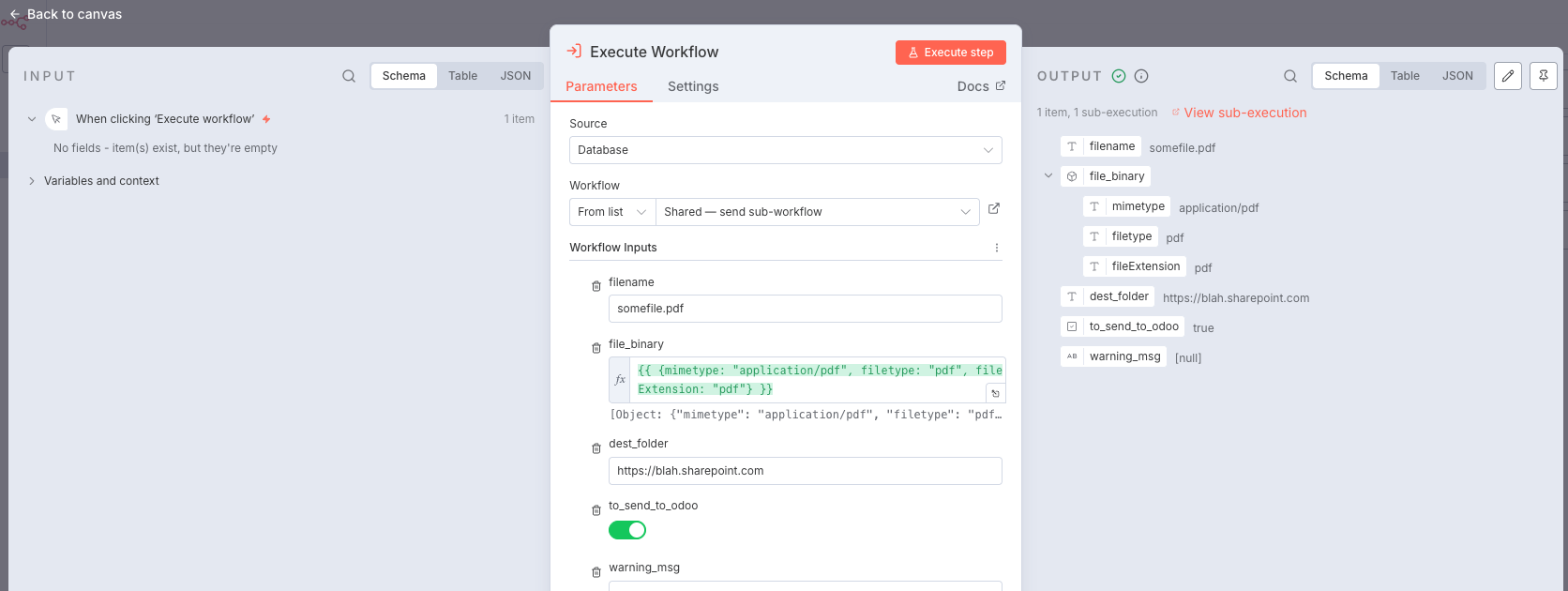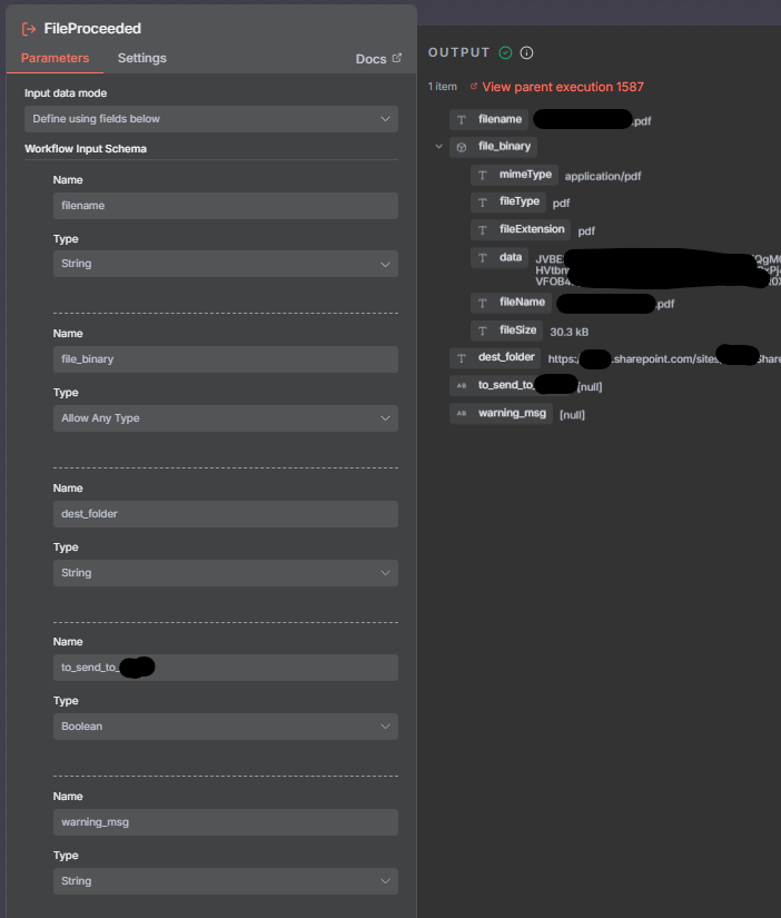 We can see in the sub workflow that this parameter is defined to Boolean but the Output displays it as Sting.