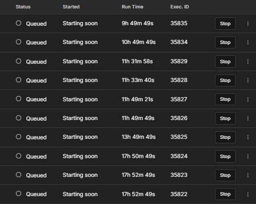I’ve attached a screenshot showing the queued executions for reference.