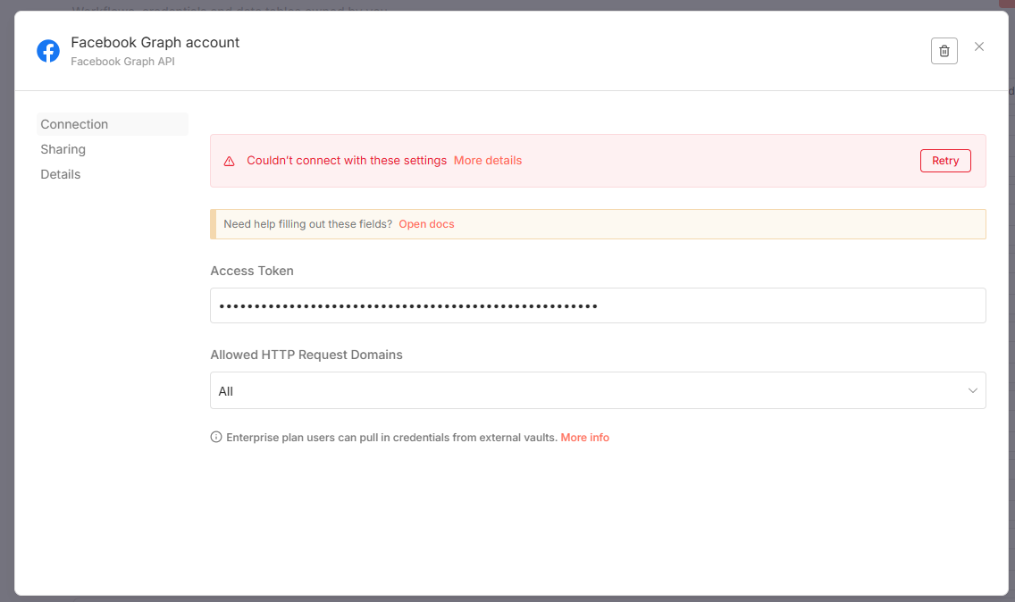 For n8n facebook graph api node