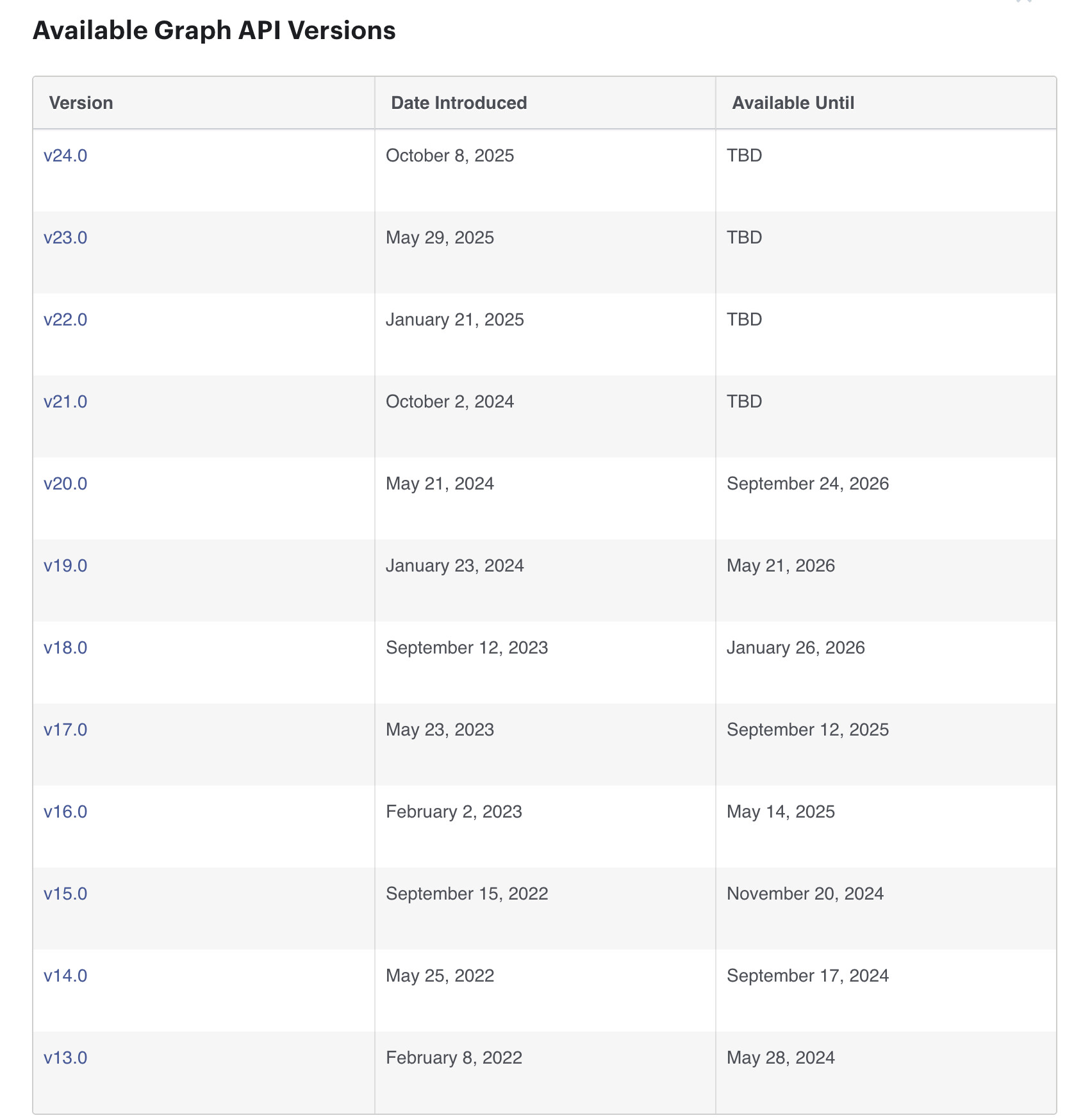 For Facebook graph api. The update is really often and they don’t depreacted old version in a short time.