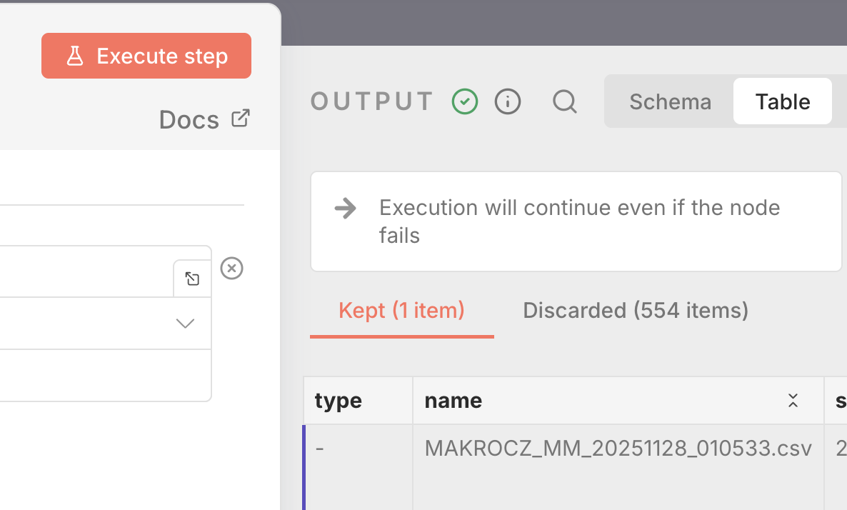 I have an issue that the filter node does not forward items that meet the filter criteria during the automatic workflow execution. When run manually (clicked on the execute button above the filter node), the filter sends these items.
