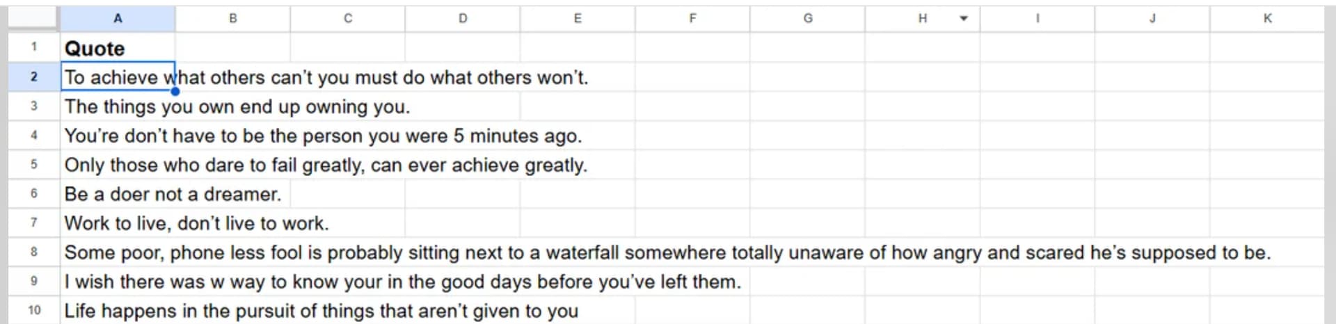 Goal: Send a motivational quote every morning at 8 AM to a list of my close friends. A different quote should be sent each day.
