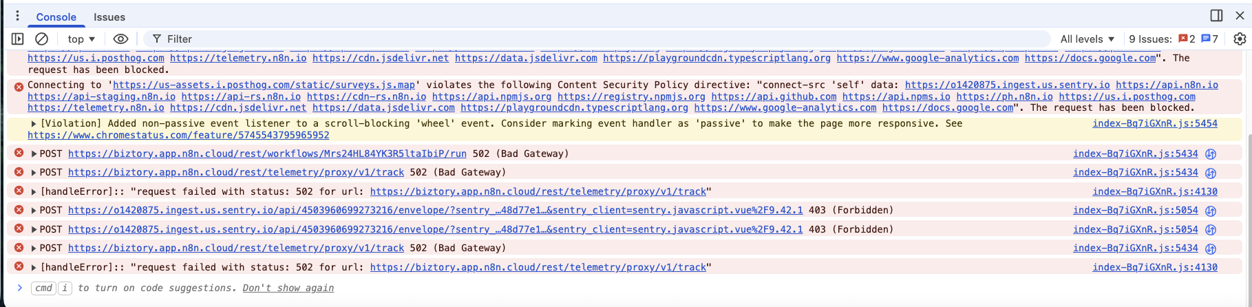 We use n8n cloud. While working a any workflow (editing or running), we’re often seeing the UI “hang”, with the following error message popping up after ~30 seconds: