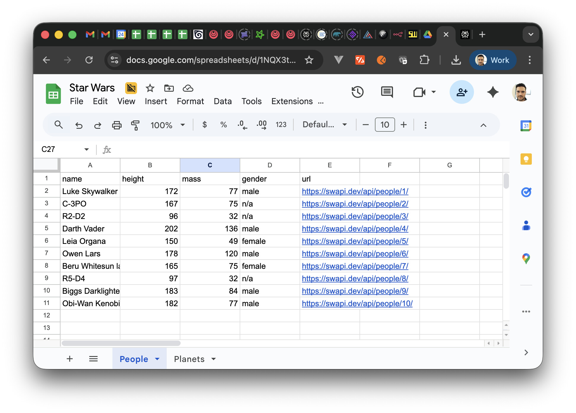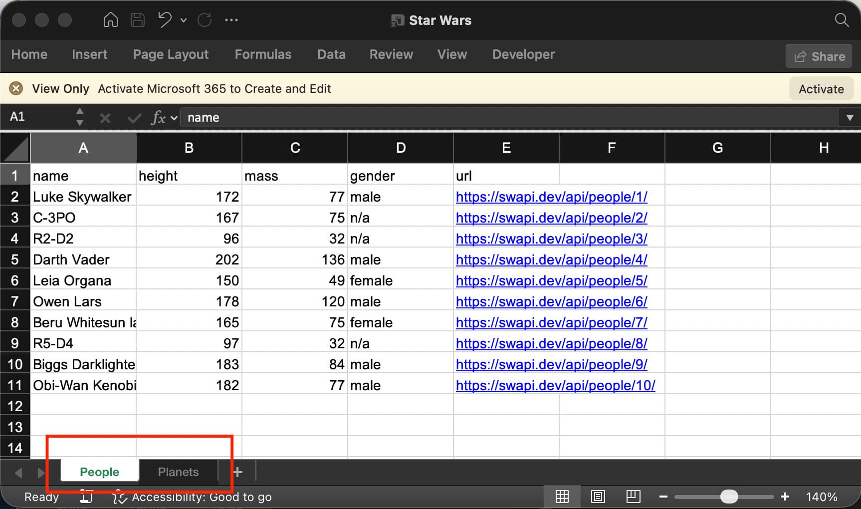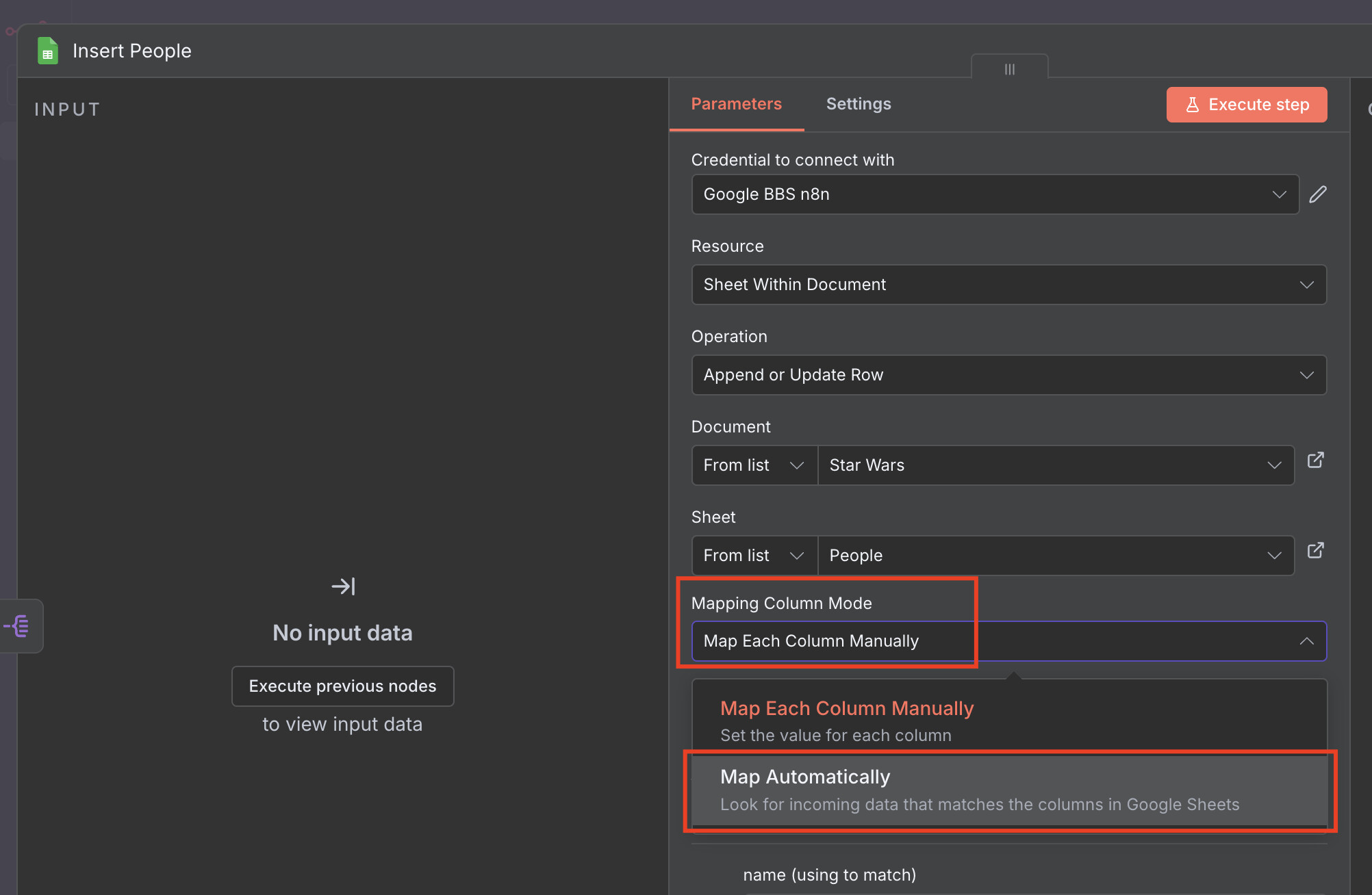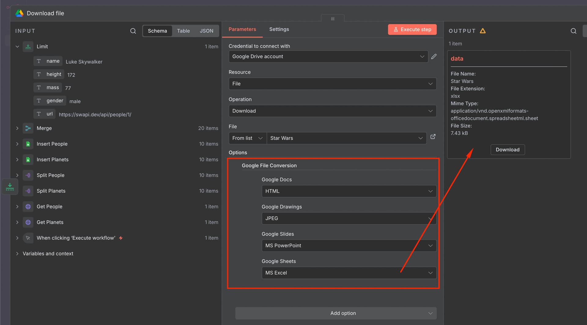 Here is an example of writing two different sets of sample data (from the star wars api - people and planets) to separate sheet tabs on the same google sheet. At the end we then just merg back in and limit to 1 item to download the Google Sheet as a xlsx file.
