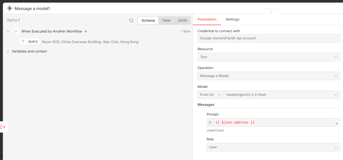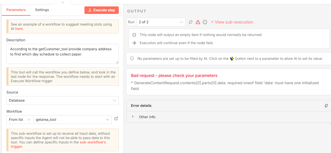 this is my sub workflow. i tried choose “accept all data“ or “define using fields below“. it still show this error. i input some data to test the workflow is no error show.
