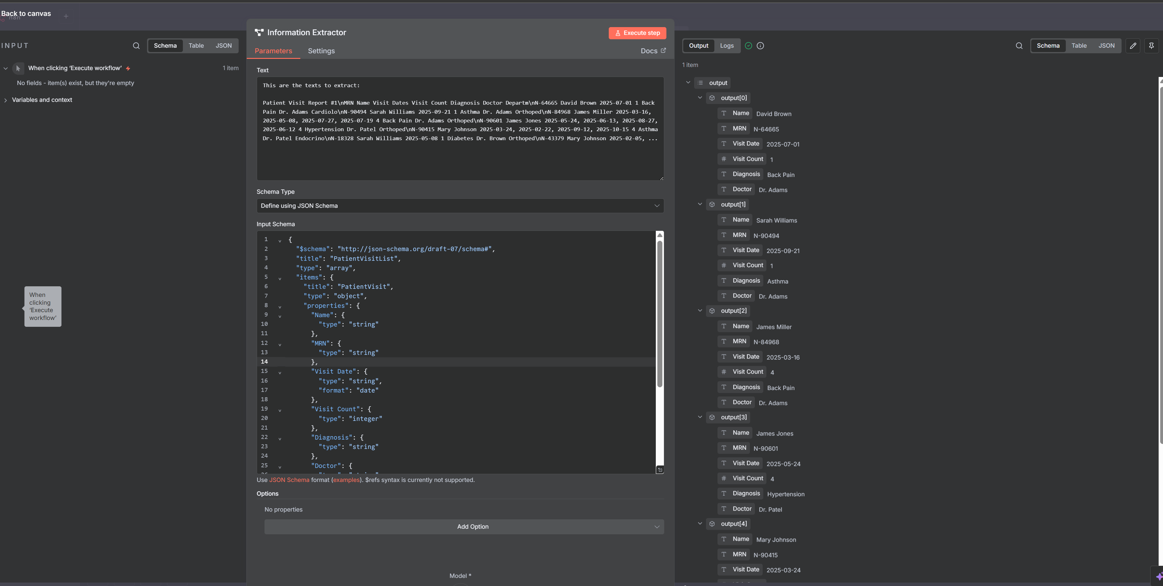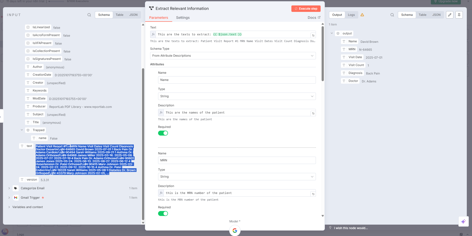 Hi guys! So I’m trying to get all the information from the left side out and map them, but I’m only getting one set of output from the list highlighted on the left side. How can I get all the names and details out?. For context, I’m trying to get details out of a pdf (so I used extract from pdf node) and there are a list of names and details in the pdf so I want to get them all out. Thank you.
