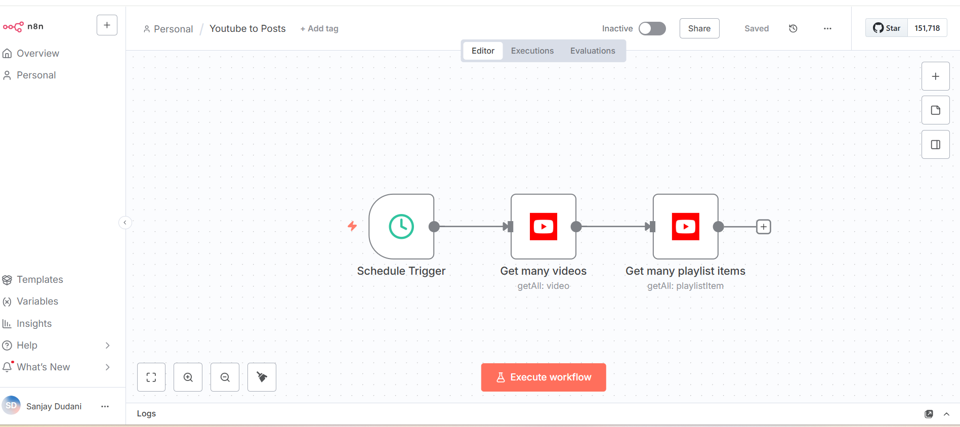 Use case- I want to generate social media posts from youtube videos of the channels I follow. I had set up my Youtube OAuth credentials & tried to pull in the relevant playlists from Youtube. But, its not happening